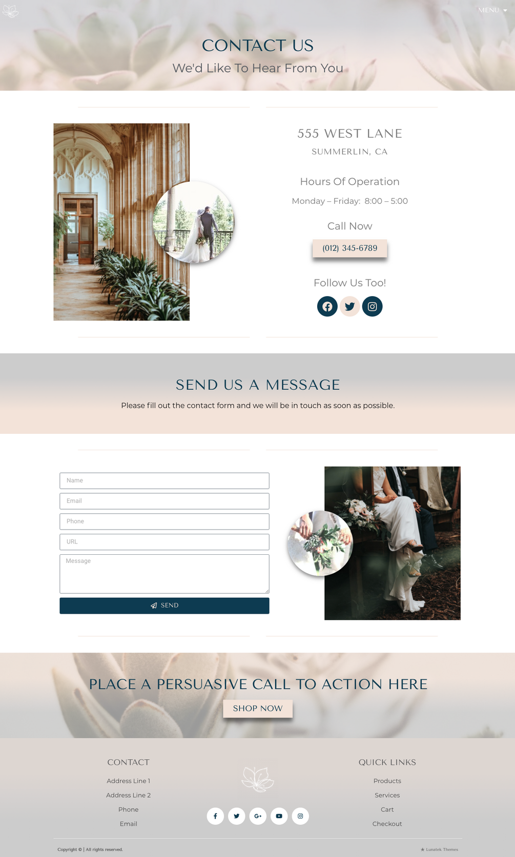 A stylish Contact Page (Elementor Template) for entrepreneurs who need a professionally developed, customizable design they can deploy rapidly. Easy to customize, with copywriting guidance in the filler text sections. Swap out the filler images and text with your own. Includes a pre-designed "Contact" page, and associated Theme-Builder sections.